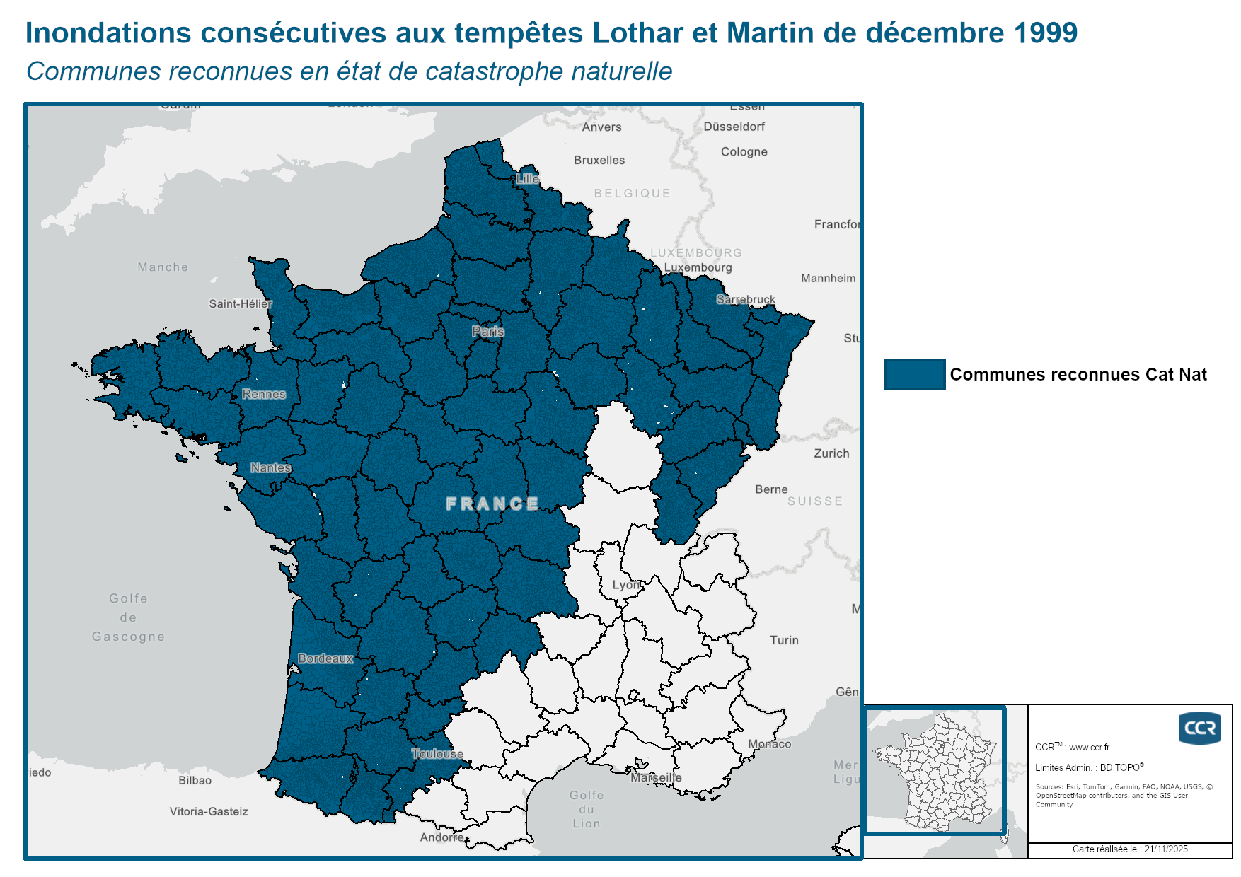 Le mois de décembre 1999 est marqué par une grande fréquence de vents extrêmement forts qui atteignent leur paroxysme du 26 au 28 avec le passage de deux tempêtes dévastatrices venues de l’ouest. La succession de ces deux tempêtes, leur formation près des côtes, et le fait qu’elles aient continué à se renforcer dans les terres au lieu de s’atténuer constituent un événement exceptionnel. Les rafales de vent enregistrées au cours de ces deux tempêtes sont, pour un grand nombre de stations, des records absolus.