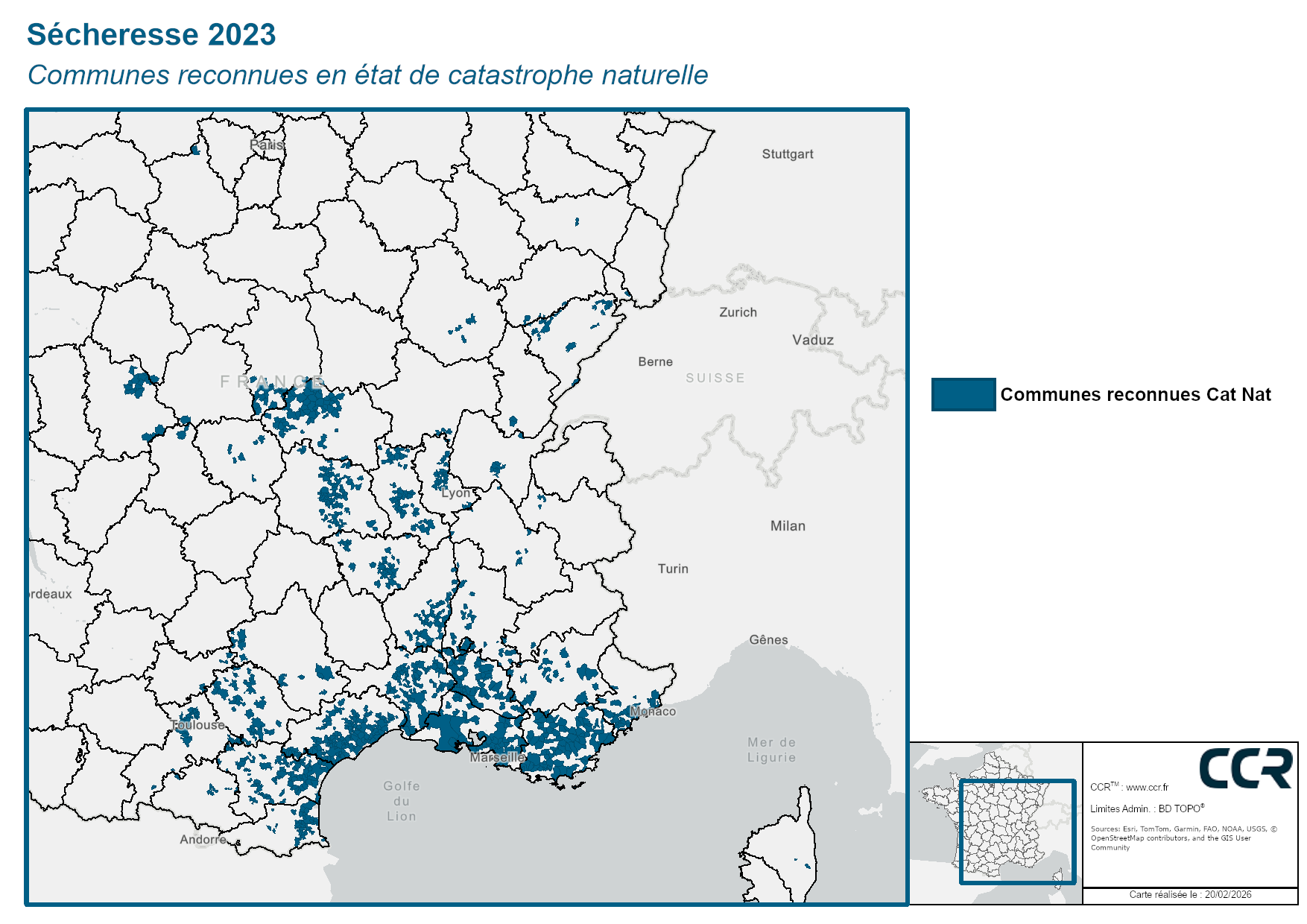 L’année 2023 a été marquée par un épisode de sécheresse marqué sur la moitié sud du territoire français. D’après les analyses de Météo France, l’année 2023 est la deuxième année la plus chaude en France depuis le début du XXe siècle. La pluviométrie est dans la norme, mais est contrastée selon les régions. Le littoral languedocien et les Pyrénées-Orientales ont subi en 2023 un déficit pluviométrique prononcé.