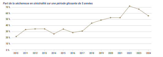 Pour la sécheresse : 560 000 € sur les 10 dernières années (contre 380 000 € sur la période 1989-2023).